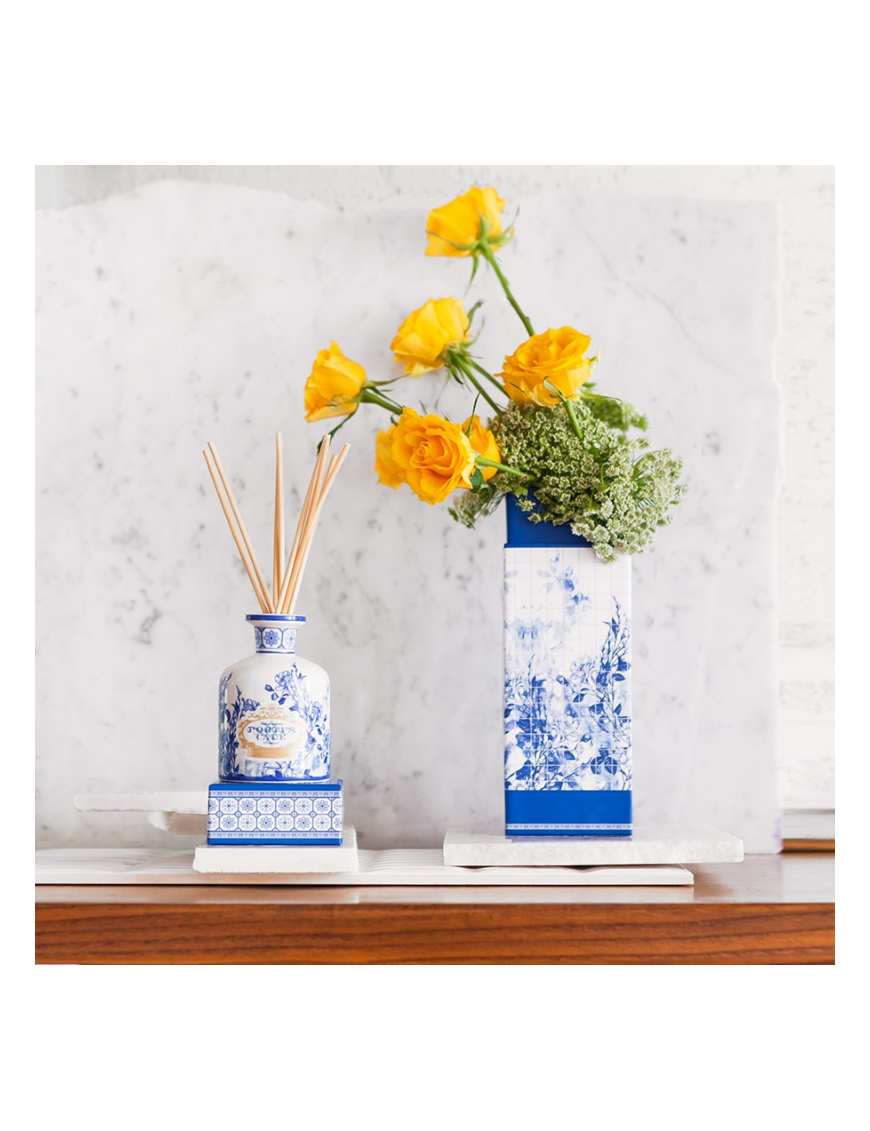 Le diffuseur Gold & Blue rend hommage au Portugal et à ses célèbres azulejos bleus et blancs. Son parfum sophistiqué de jasmin floral et poivre rose emplit votre intérieur d’une ambiance élégante et raffinée. Avec sa céramique décorative et ses bâtonnets diffusants, il allie design et confort olfactif durable. Idéal pour salon, chambre, entrée ou salle de bain, il transforme chaque pièce en un espace accueillant et méditerranéen, alliant esthétique et parfum subtil.