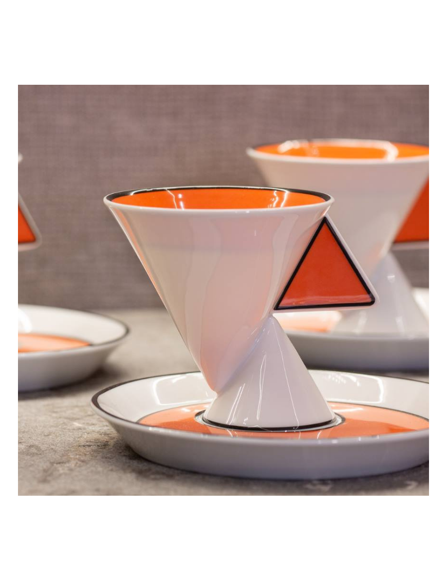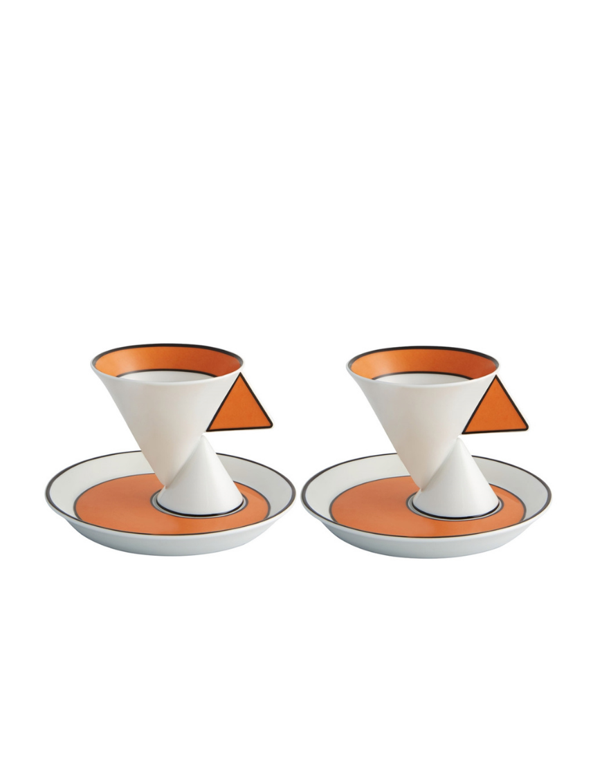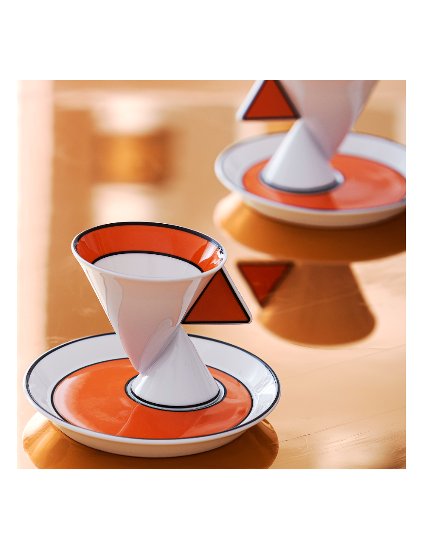Set de 2 tasses à café et soucoupes de la collection jazz en porcelaine fine est une manifestation exemplaire de l'art de la maison de renom, Vista Alegre. Cette création reflète la finesse et l'engagement méticuleux envers les détails qui perdurent depuis les débuts de cette fabrique de porcelaine en 1824