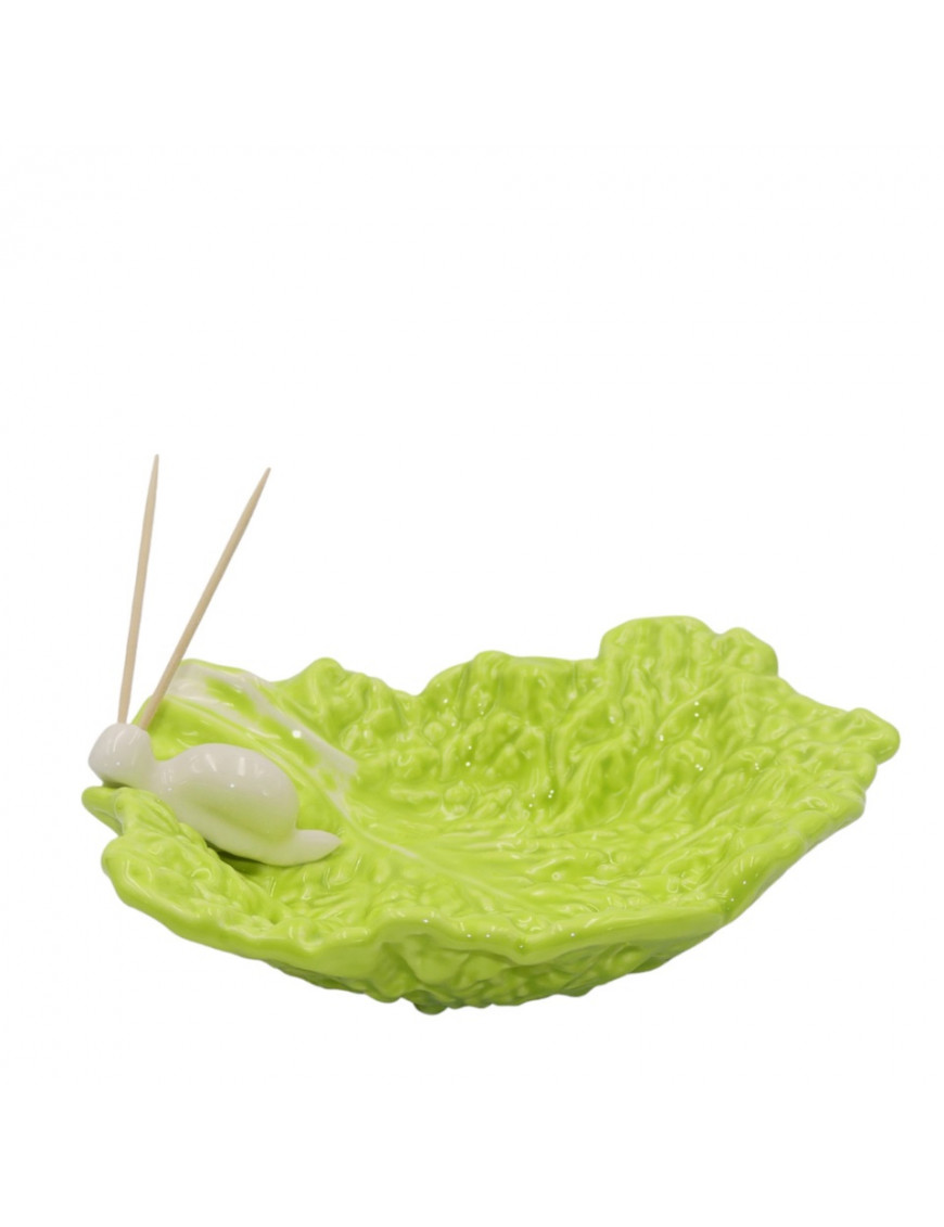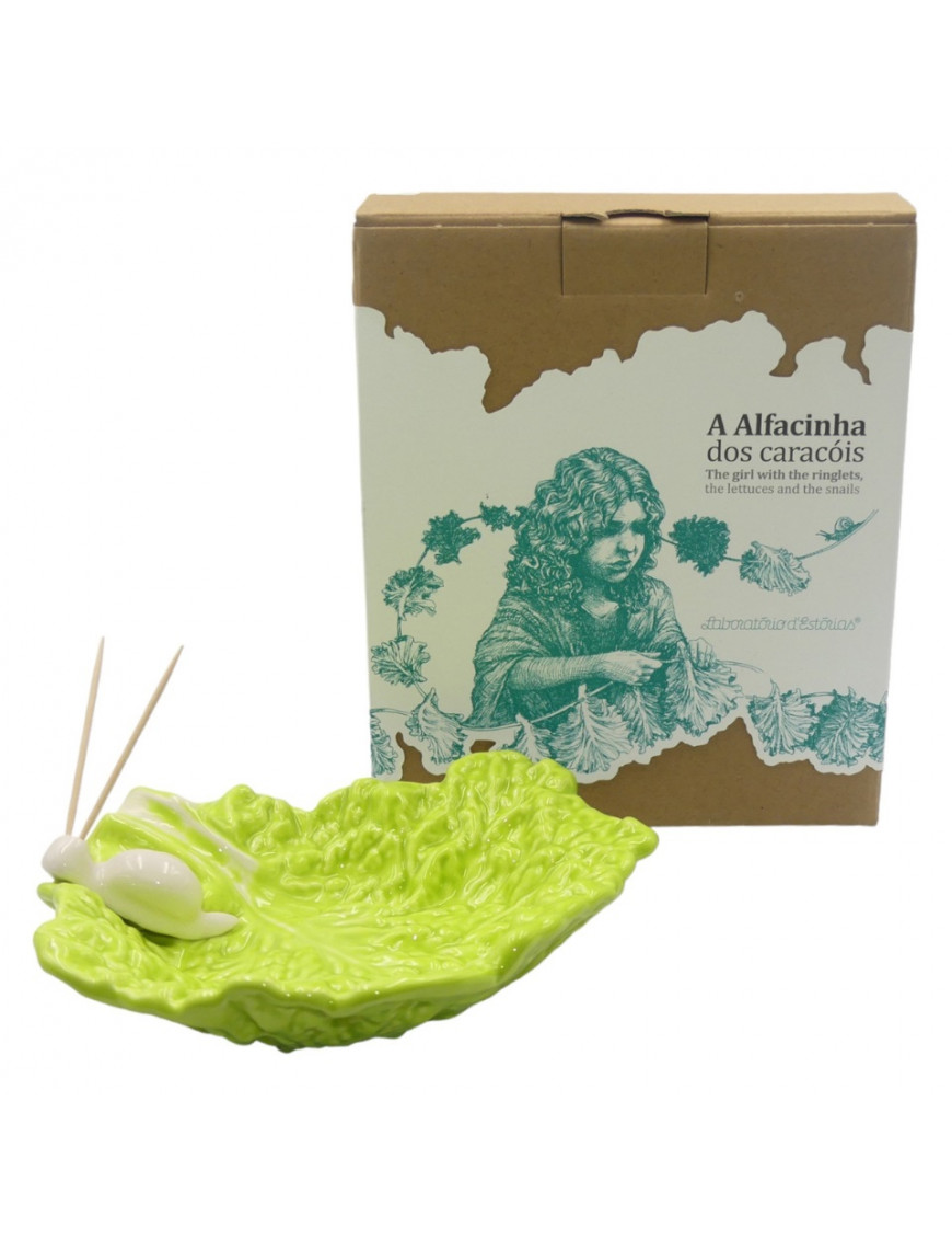 Cette petite assiette réinterprète avec poésie et humour l’un des rituels les plus emblématiques de Lisbonne : la dégustation des caracóis (escargots). Inspirée d’une feuille de salade, cette assiette en céramique artisanale est spécialement conçue pour accueillir des cure-dents, utilisés pour déguster escargots, tapas ou petits mets.