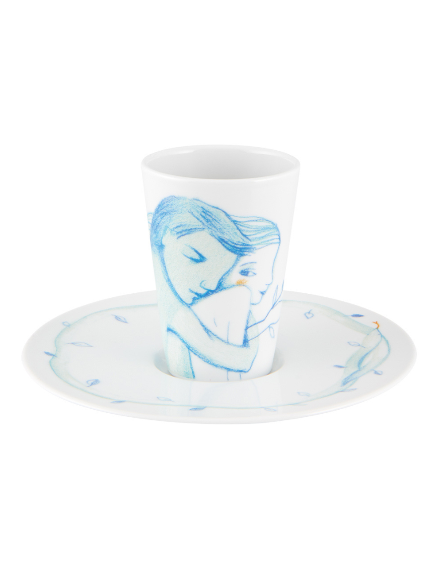 Tasse à café en porcelaine fine portugaise issue de la collection Bode Inspiratório (Vista Alegre), illustrée par Evelina Oliveira et Luis Fil. Chaque pièce unique, aux motifs graphiques et poétiques, transforme chaque pause café en un moment d’exception. Avec ses 6 cm de diamètre et 8 cm de hauteur, reposant sur une soucoupe de 14,5 cm, elle est idéale pour un espresso, un café court ou pour enrichir une collection d’objets d’art. Élégante, contemporaine et chargée d’émotion, cette tasse est aussi un cadeau symbolique et raffiné pour les amateurs d’art et de porcelaine portugaise.