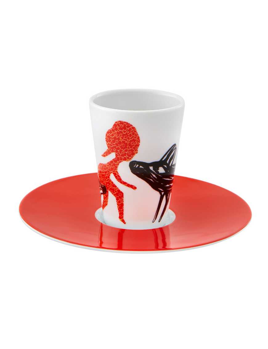 Tasse à café en porcelaine fine portugaise issue de la collection Bode Inspiratório (Vista Alegre), illustrée par Hugo Mae et Adélia Ca. Chaque pièce unique, aux motifs graphiques et poétiques, transforme chaque pause café en un moment d’exception. Avec ses 6 cm de diamètre et 8 cm de hauteur, reposant sur une soucoupe de 14,5 cm, elle est idéale pour un espresso, un café court ou pour enrichir une collection d’objets d’art. Élégante, contemporaine et chargée d’émotion, cette tasse est aussi un cadeau symbolique et raffiné pour les amateurs d’art et de porcelaine portugaise.