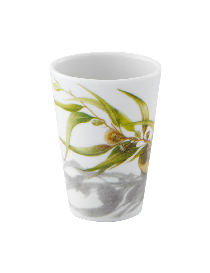 • Zoom sur la tasse avec des feuilles vertes